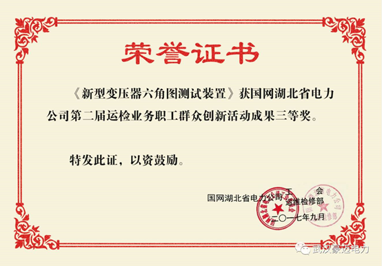 近日,國(guó)網(wǎng)湖北省電力公司第二屆運(yùn)檢業(yè)務(wù)職工群眾創(chuàng)新實(shí)踐活動(dòng)比賽圓滿落幕,我公司和國(guó)網(wǎng)孝感供電公司合作研發(fā)的《新型變壓器六角圖測(cè)試裝置》項(xiàng)目在此次活動(dòng)中榮獲三等獎(jiǎng)。