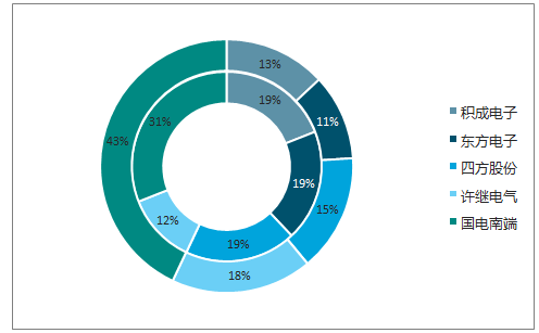 20162017年國(guó)電南瑞在主站系統(tǒng)市占率圖