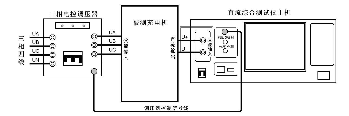 通過調(diào)壓裝置(如三相調(diào)壓器)將充電機交流輸入電壓在額定電壓±15%內(nèi)變化,通過負載調(diào)整裝置(如放電儀),使充電機的直流輸出電壓及輸出電流在規(guī)定范圍內(nèi)變化(電壓調(diào)整范圍為額定值的90~120%,電流調(diào)整范圍為額定值的0~100%),測量電壓、電流及紋波值,計算得到充電機的穩(wěn)壓精度、穩(wěn)流精度及紋波系數(shù)、紋波波形顯示等結(jié)果。