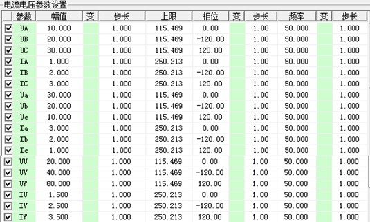 每相設(shè)置不同的電壓電流量方便檢查采樣值。在加采樣值時以防保護(hù)動作產(chǎn)生報文不方便看采樣信息最后先將主保護(hù)功能退掉。