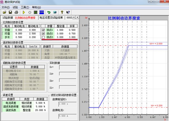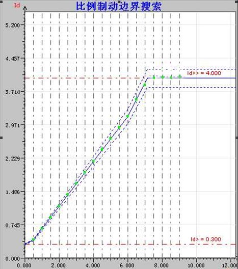 完成上面的設(shè)值之后就可以直接開始試驗了,制動電流與差動電流初值終值步長只會形象圖的美觀度,測試儀會自動的完成比例制動邊界搜索,試驗結(jié)果如圖10所示: