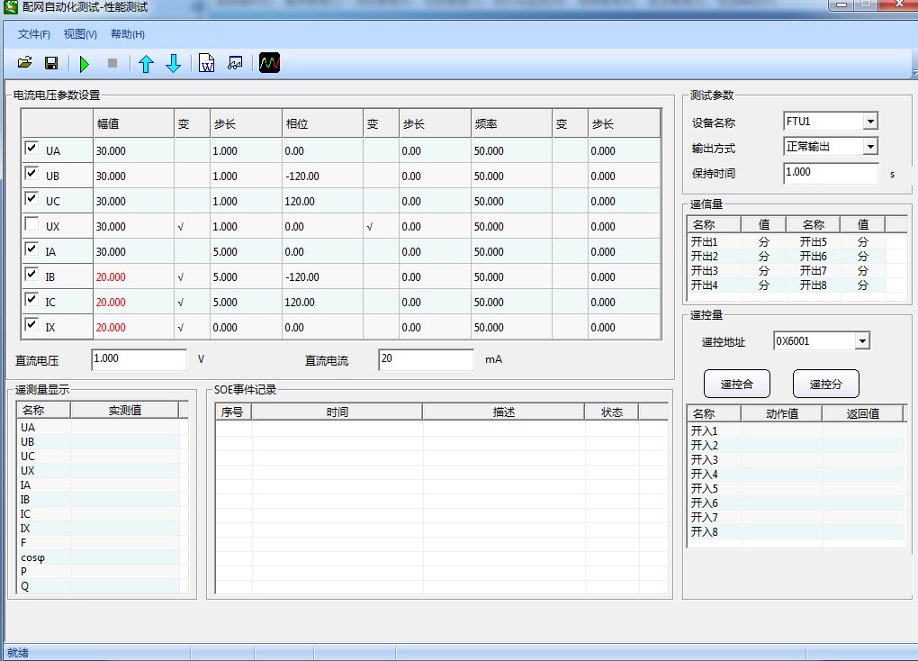 配電之星-P2200 可根據(jù)測(cè)試參數(shù)輸出方式,在界面選擇正常的通道電壓電流輸出、合成輸出、直流輸出、遙測(cè)值顯示,通過(guò)獲取配電終端的遙信及SOE數(shù)據(jù),實(shí)現(xiàn)對(duì)配電終端遙信可靠性、遙信防抖、SOE分辨率等功能檢測(cè)。