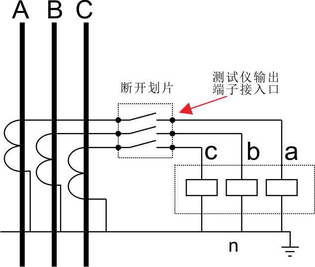 斷開IA、IB、IC、IN端子排上的連接劃片,使保護裝置與線路斷開