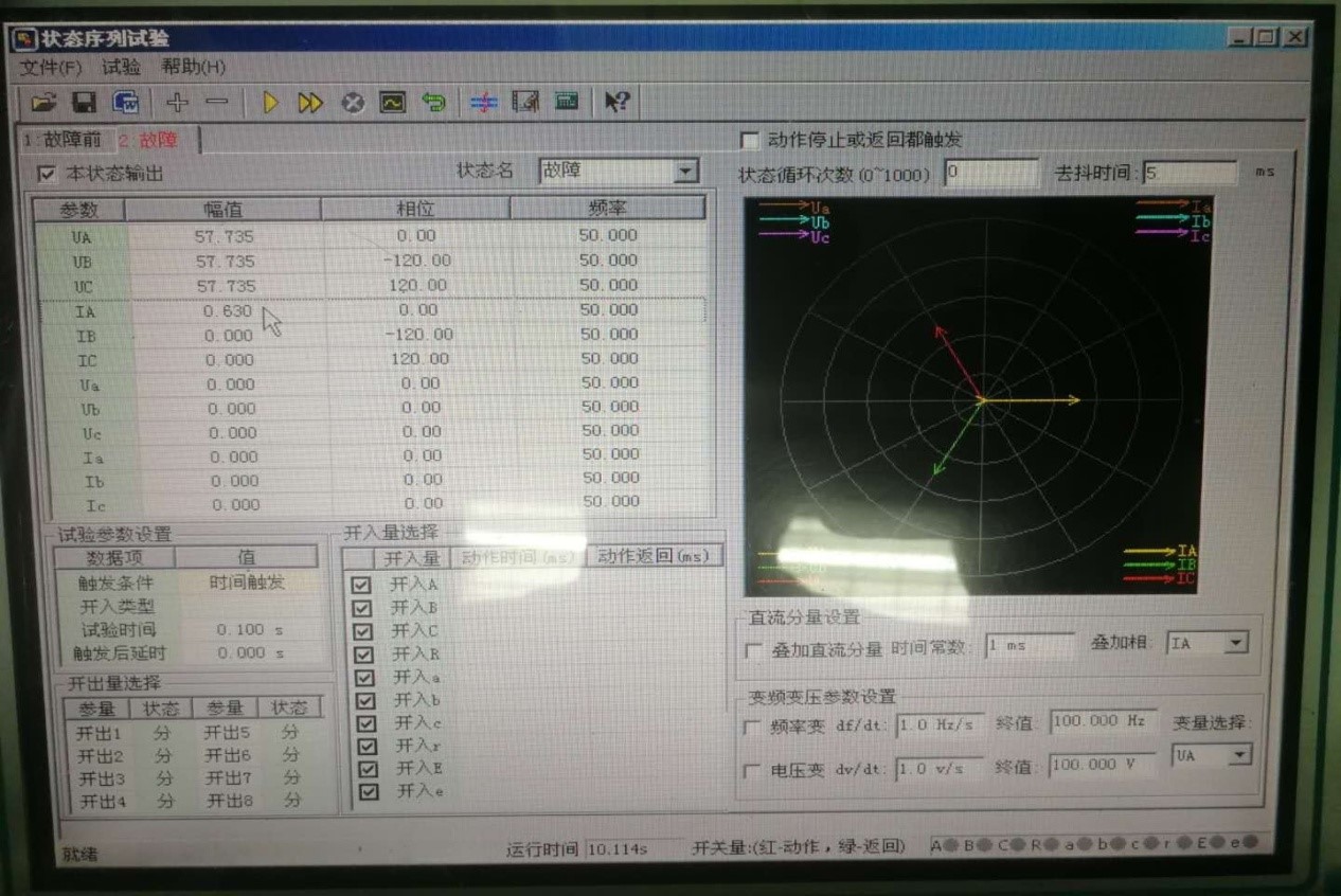 根據(jù)差動動作值1.2A計算可得,差動電流實驗值1.2*0.95=1.14A,實驗電流為0.57A。