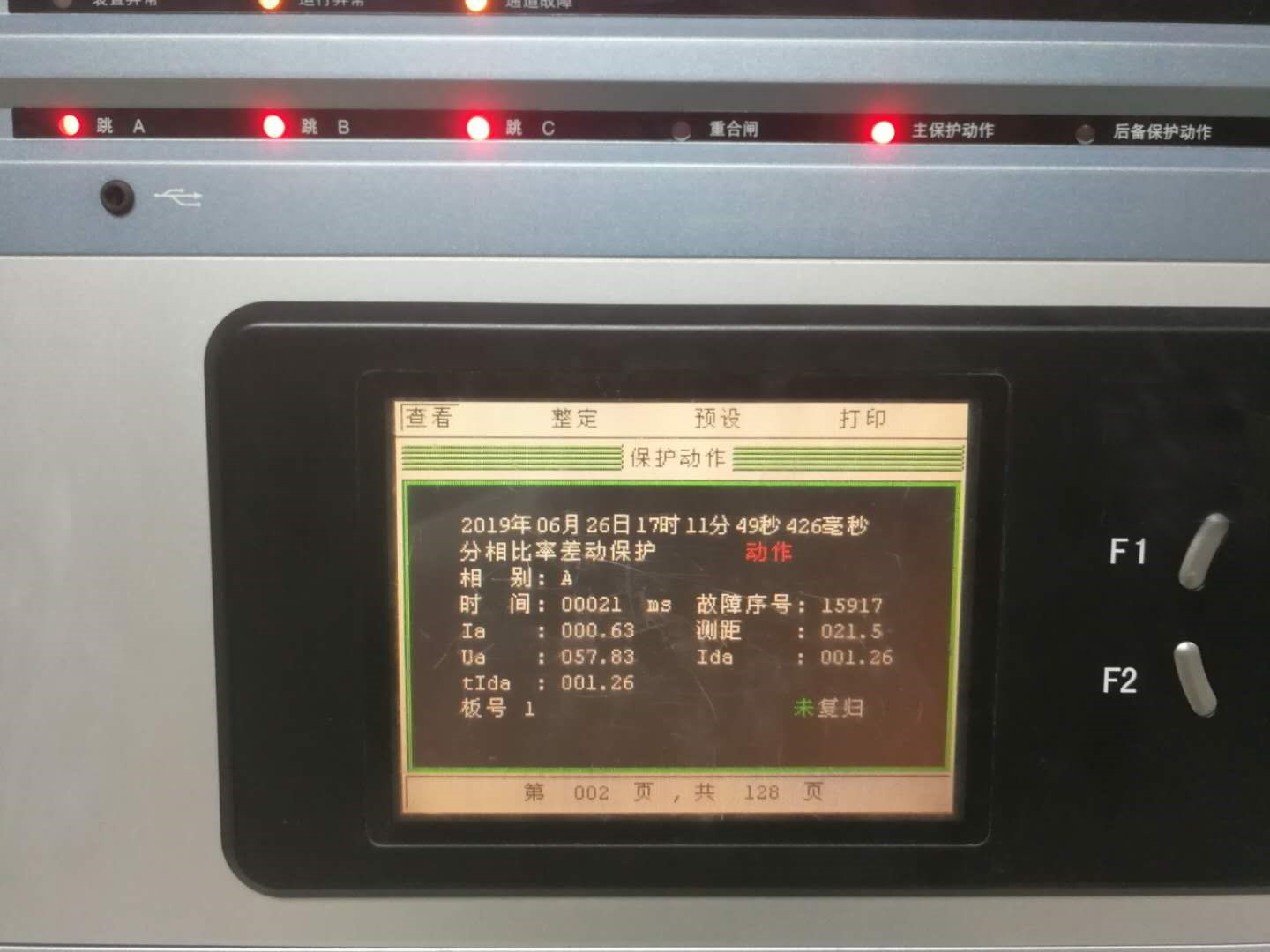 根據(jù)差動動作值1.2A計算可得,差動電流實驗值為1.2*1.05=1.26A,實驗電流為0.63A。