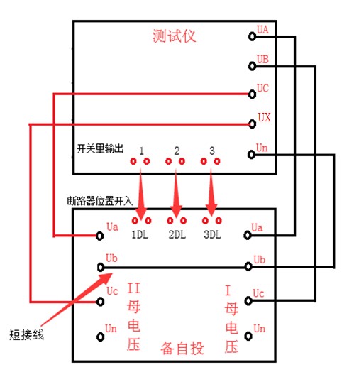 若沒有母線電壓,進行試驗則需要使用繼保儀給備自投裝置加兩組電壓。