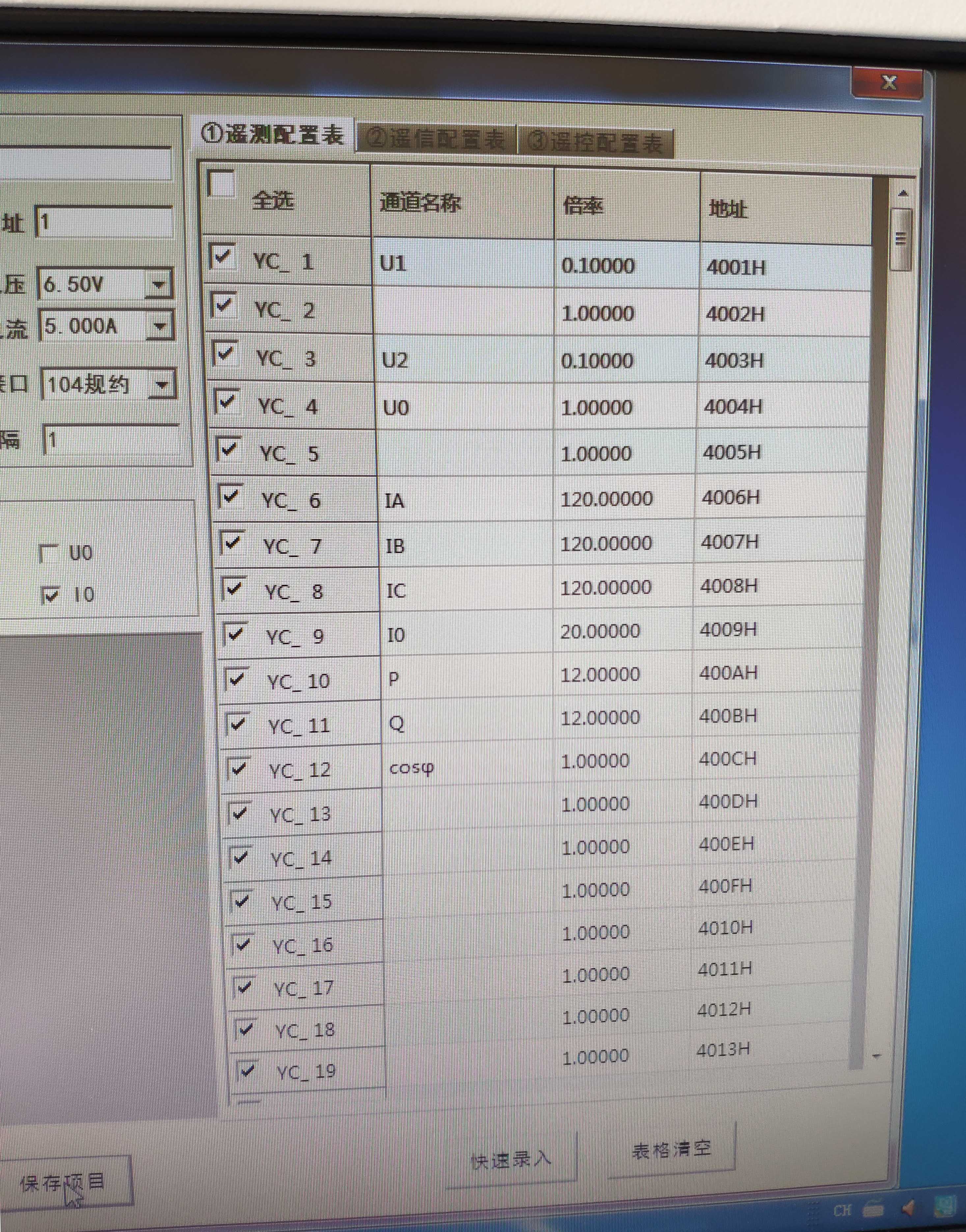 ▲ 遙測點表配置(遙信、遙控點表類推)