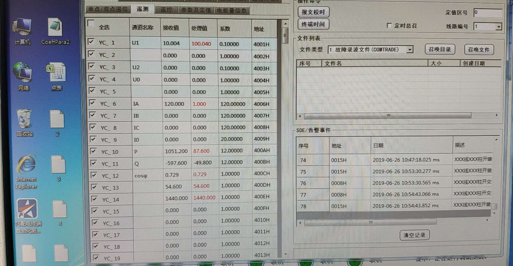 7)進入性能界面加量或者手動分合閘,然后進入監(jiān)視界面監(jiān)視FTU遙信、遙測、遙控實時狀態(tài)及變位。 (此操作可手動驗證三遙試驗是否成功,相關(guān)配置是否正確)
