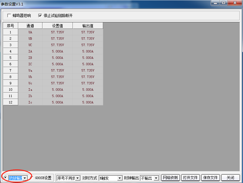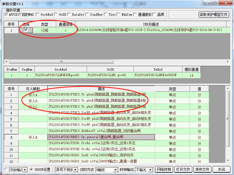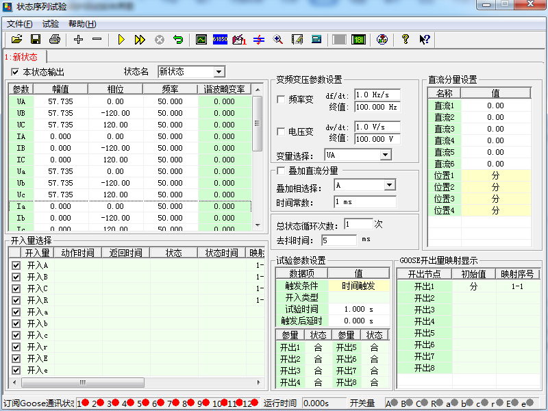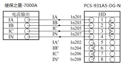 某智能變電站保護(hù)裝置采用模擬量采樣GOOSE跳閘的方式,線路1A套南瑞保護(hù)PCS-931A5-DG-N的線路光差定值為1.0A,使用繼保之星-7000A校驗(yàn)差動(dòng)保護(hù)動(dòng)作并測(cè)試出其動(dòng)作時(shí)間。