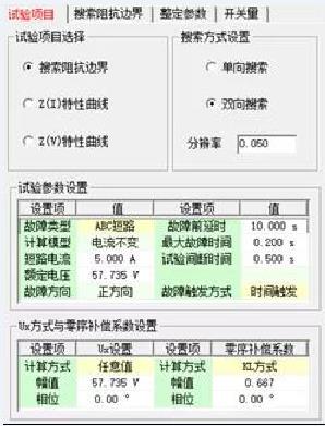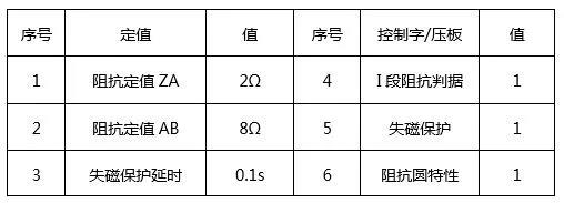 整定參數(shù)設(shè)置: 整定阻抗為定值單上的值,可設(shè)為8Ω,角度為-90°。