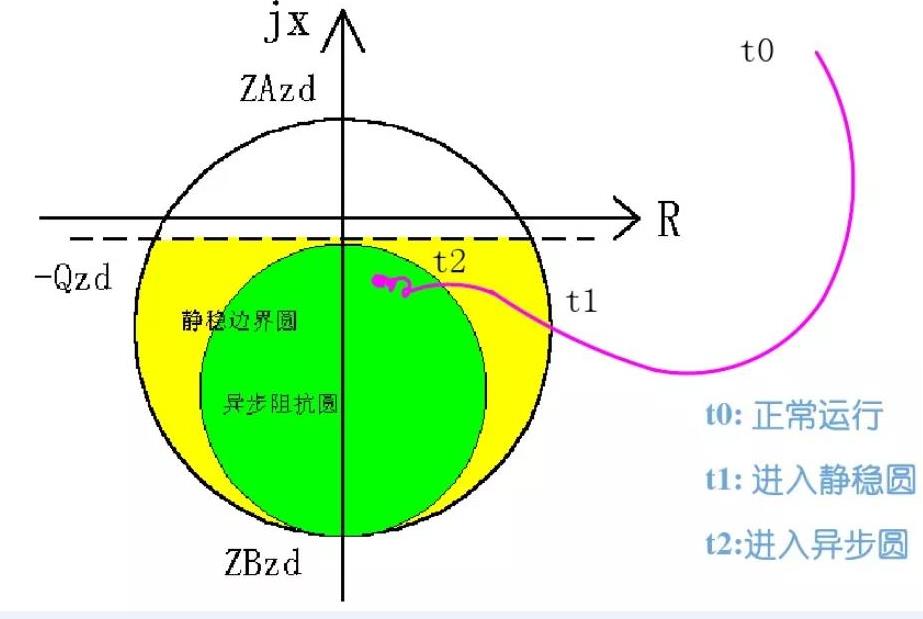△? 發(fā)電機機端正序測量阻抗失磁后的變化軌跡