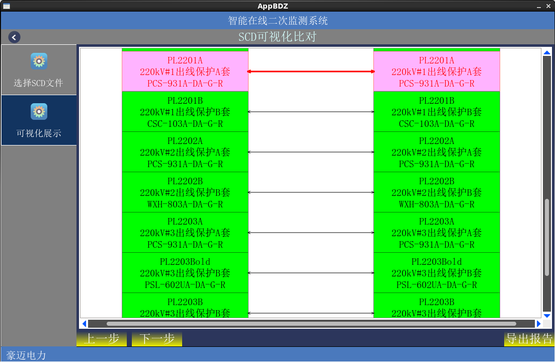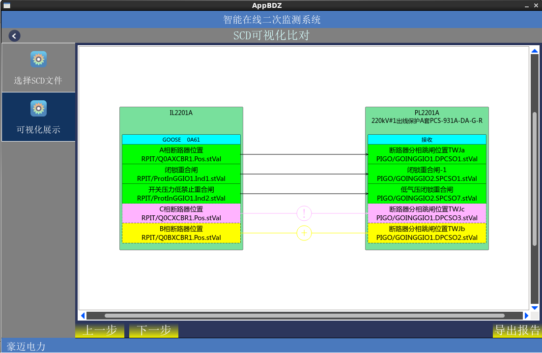 基于SCD合并算法,實現(xiàn)改動前后SCD文件的比對功能,將相同間隔中不同虛端子連接情況以列表和圖形的方式進行展示。