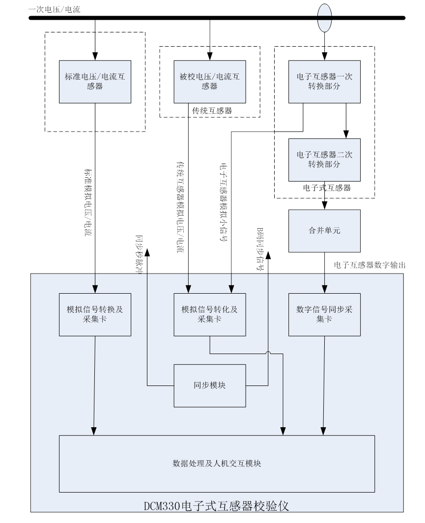 DCM-330 電子式互感器校驗儀做精度校驗時,校驗系統(tǒng)同時將標準互感器和被?;ジ衅鞯膬陕沸盘栞斎?。