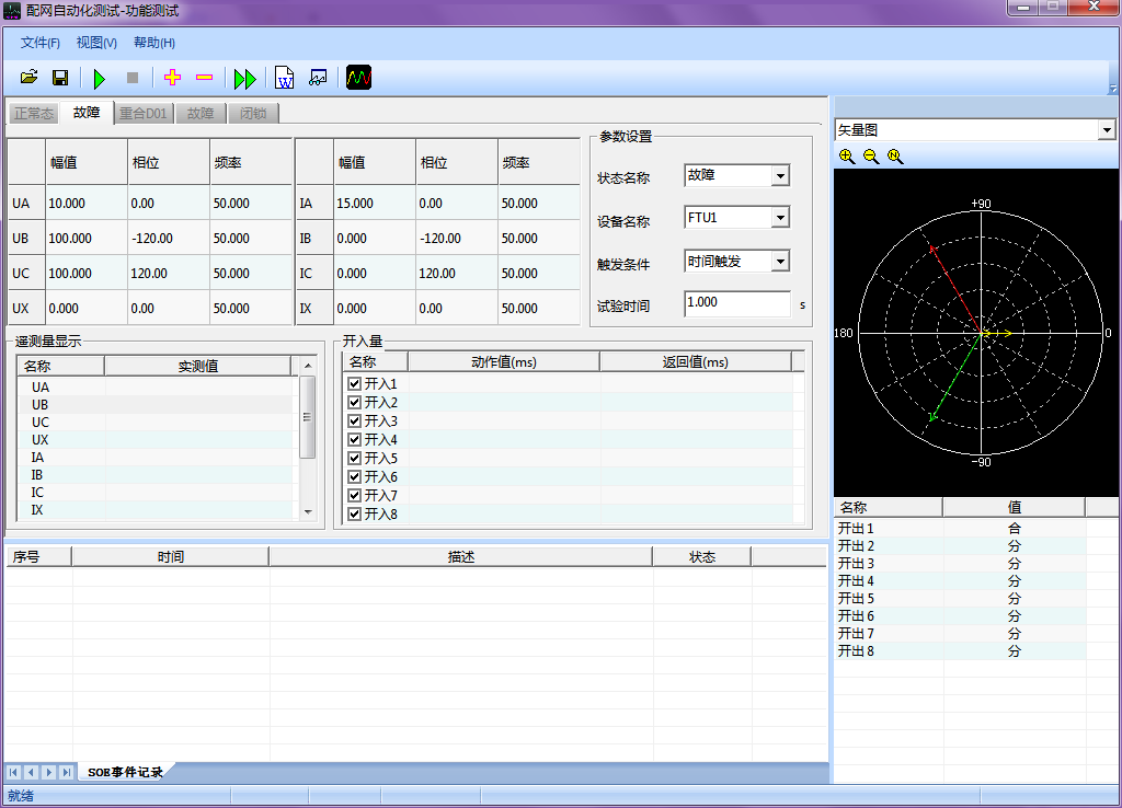 打開(kāi)配電之星-P2200A1 功能測(cè)試模塊模擬每個(gè)故障點(diǎn)的真實(shí)電流電壓變化情況。
