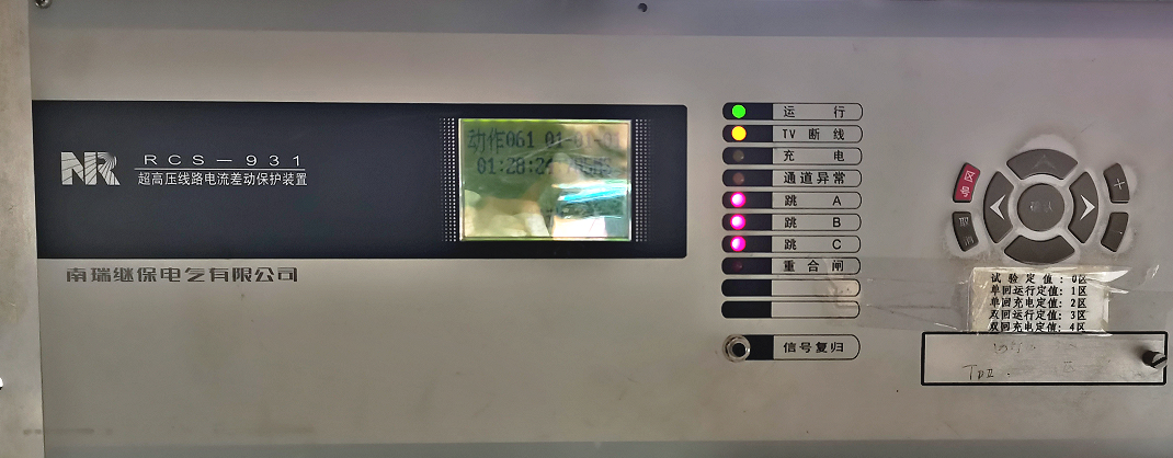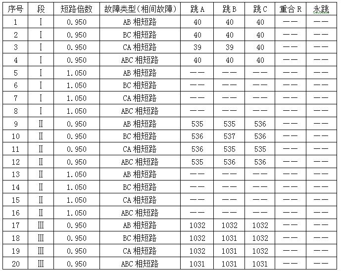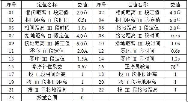 在“壓板定值”里,“投距離保護(hù)壓板”和“投零序保護(hù)壓板”置“1”,“投差動保護(hù)壓板”置“0”。