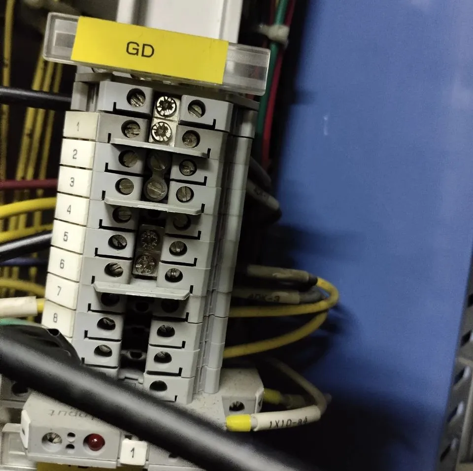 △ GD標(biāo)簽為保護(hù)屏直流電源輸入端子排,增加1個(gè)電壓端子,并將GD1和GD2短接、GD5和GD6短接