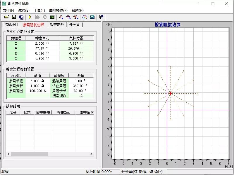 在“阻抗特性試驗”菜單里選擇搜索阻抗邊界,搜索方式選擇雙向搜索,分辨率0.05,具體參數(shù)設置如下。