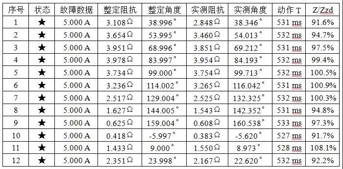 繼保之星-S60 自動記錄阻抗特性試驗結果數(shù)據(jù),如下表: