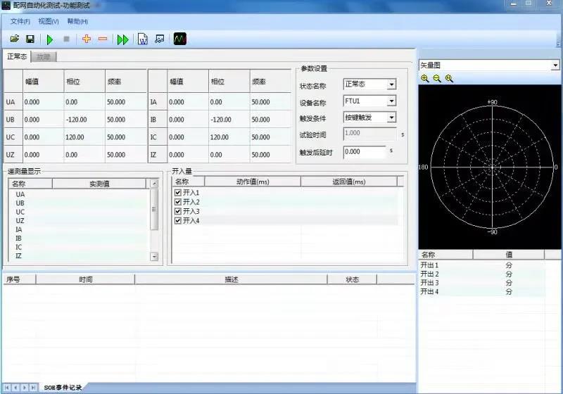 做好安全措施及現(xiàn)場人員分工,確認被測線路的實際運行方式與主站系統(tǒng)接線圖一致、主站系統(tǒng)的環(huán)網(wǎng)圖拓撲關系正常、被測線路DTU、FTU通信正常、配電自動化終端與配電開關模擬試驗盒接線正確。