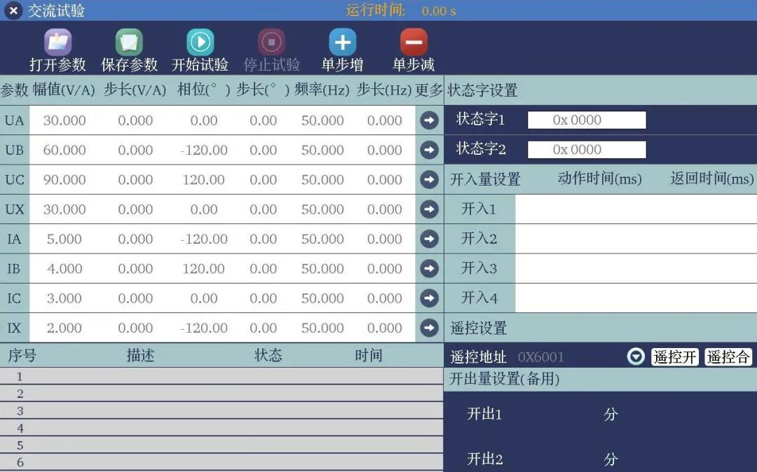 配電之星- P30軟件功能界面主要包含交流試驗、狀態(tài)序列、系統(tǒng)設(shè)置,點擊對應(yīng)按鈕進(jìn)入功能模塊。