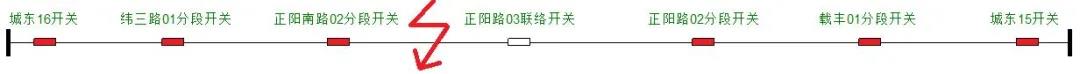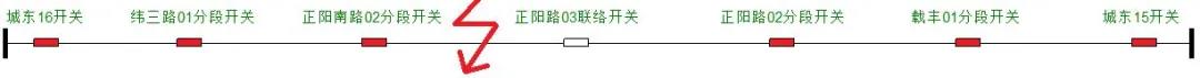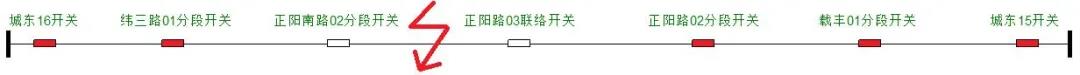 緯三路01分段開關(guān)與正陽南路02分段開關(guān)之間故障 |