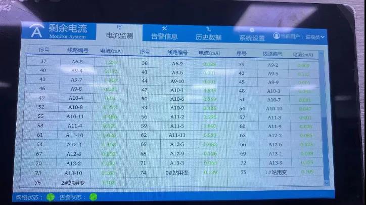 剩余電流監(jiān)測(cè)系統(tǒng)主機(jī): 通過(guò)人機(jī)交互界面,實(shí)現(xiàn)智能化管理。 主機(jī)顯示各個(gè)站點(diǎn)實(shí)時(shí)剩余電流值,對(duì)安裝的線路進(jìn)行實(shí)時(shí)監(jiān)測(cè),診斷線路設(shè)備運(yùn)行狀態(tài),免去人工現(xiàn)場(chǎng)巡檢。 若監(jiān)測(cè)到測(cè)量值超過(guò)設(shè)定報(bào)警值,通信狀態(tài)或設(shè)備工作狀態(tài)存在異常,屏幕上顯示警告信息,并記錄告警發(fā)生時(shí)間。 主機(jī)系統(tǒng)自動(dòng)記錄3個(gè)月內(nèi)的監(jiān)測(cè)數(shù)據(jù),以數(shù)據(jù)表格或圖形方式展示,為剩余電流值變化狀態(tài)分析提供決策依據(jù)。 人機(jī)界面提供登錄管理、權(quán)限區(qū)分功能,設(shè)置不同權(quán)限人員對(duì)設(shè)備的查看、操作權(quán)限,防止設(shè)備數(shù)據(jù)被意外篡改。