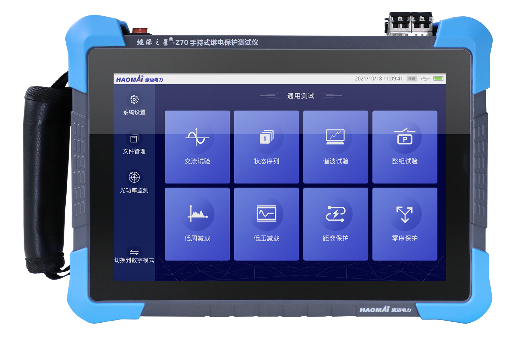 繼保之星-Z70 手持式繼電保護測試儀 是一款極致輕薄型數(shù)模一體繼保儀,約等于A4尺寸,僅重2.7kg,內(nèi)置大容量鋰電池,可用于智能站、常規(guī)站系統(tǒng)測試和快捷分析。