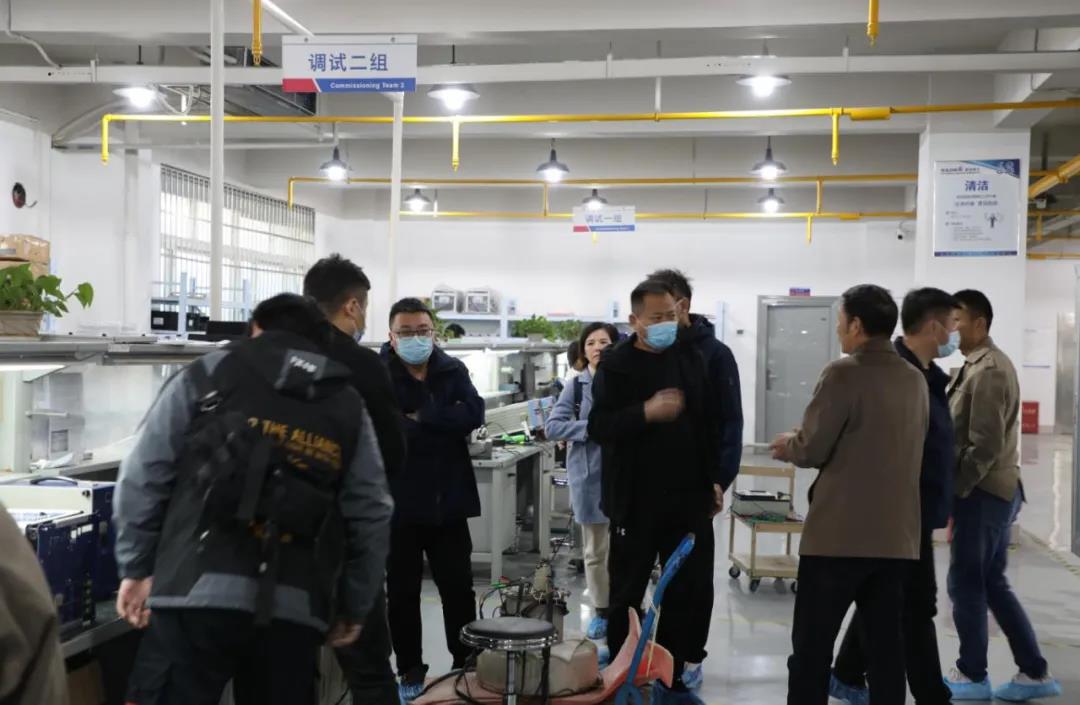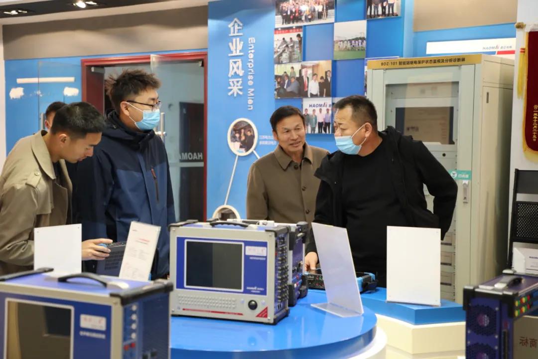 在陳總的陪同下,供電公司領(lǐng)導專家參觀了標準化車間、研發(fā)中試部和產(chǎn)品展示廳。