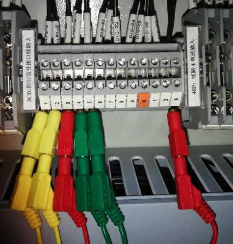 配電終端與開關(guān)柜的控制連線在配電終端側(cè)通過端子排連接。 首先拔出配電終端一次側(cè)線,使用絕緣膠帶包裹裸露端子,確保端子不會觸碰短路引起開關(guān)柜誤動作,同時對拔出的連線粘貼編號標(biāo)簽, 防止恢復(fù)接線時接錯端子。