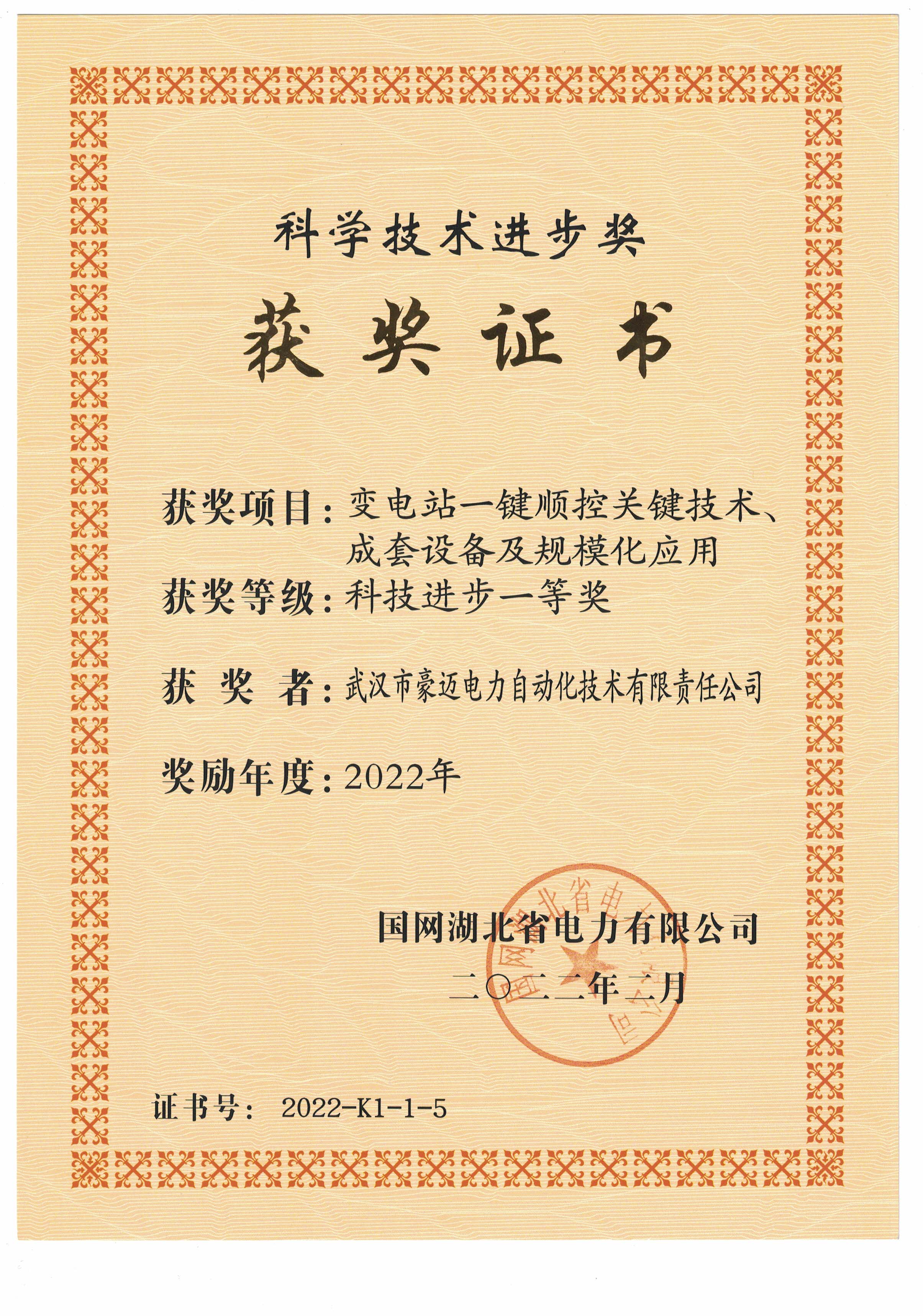 近日,武漢豪邁參與的創(chuàng)新項(xiàng)目《變電站一鍵順控關(guān)鍵技術(shù)、成套設(shè)備及規(guī)?;瘧?yīng)用》經(jīng)國(guó)網(wǎng)湖北省電力有限公司評(píng)審,榮獲國(guó)網(wǎng)湖北省電力科技進(jìn)步一等獎(jiǎng)。