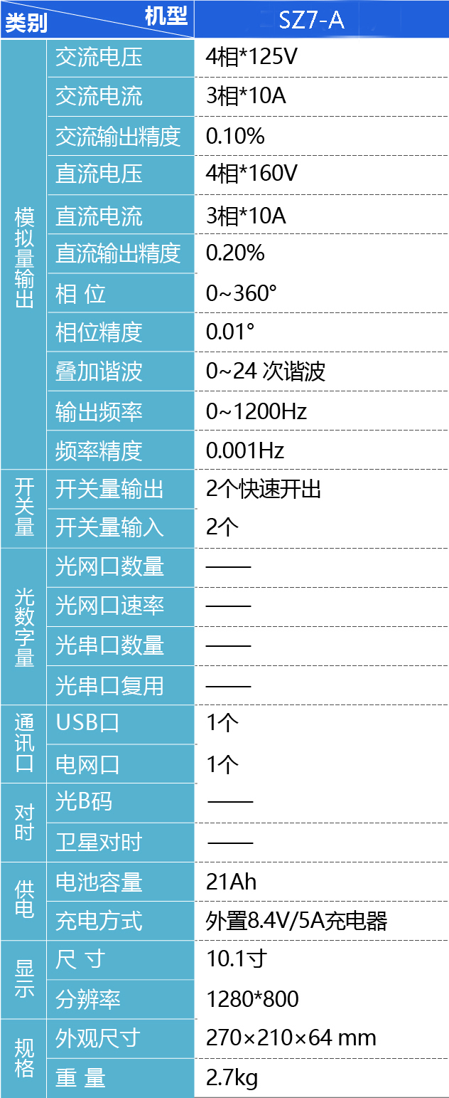 SZ7-A 二次儀表是一款包含4相電壓3相電流高精度輸出的電力二次保護(hù)系統(tǒng)測試專用儀器儀表。該產(chǎn)品可輸出高精度可控電流與電壓,主要用于變電站二次系統(tǒng)保護(hù)、測控、合并單元、智能終端等設(shè)備功能性能測試。該設(shè)備支持北斗、GPS、B碼對時,多機同步輸出。