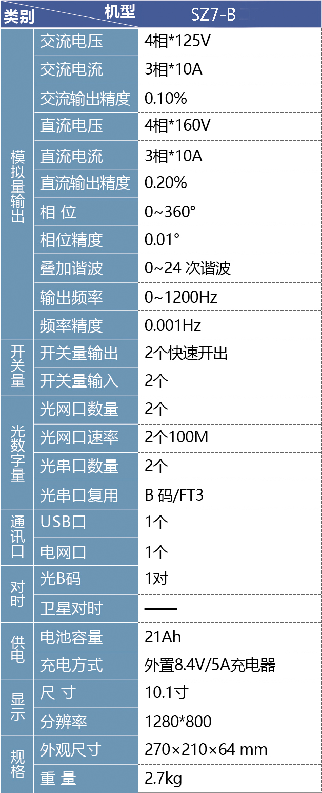 SZ7-B二次儀表是一款具備4相電壓3相電流高精度模擬量輸出及IEC61850光數(shù)字信號輸出的電力二次保護系統(tǒng)專用測試儀器。光數(shù)字部分基于IEC61850標準開發(fā),可用于電力系統(tǒng)二次保護系統(tǒng)光數(shù)字SV/GOOSE報文收發(fā)及分析;模擬量部分輸出高精度可控電流與電壓,用于智能變電站二次系統(tǒng)保護、測控、合并單元、智能終端等設備功能性能調(diào)試。該設備同時支持“模擬量+GOOSE”保護裝置的調(diào)試。支持北斗、GPS、B碼對時,多機同步輸出。