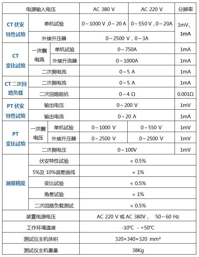 裝置可用于CT、PT的伏安特性曲線、10%和5%誤差曲線、變比、極性、角差測量、二次側(cè)回路負(fù)載測試、二次側(cè)回路檢查、退磁功能、二次繞組交流耐壓等試驗(yàn)。