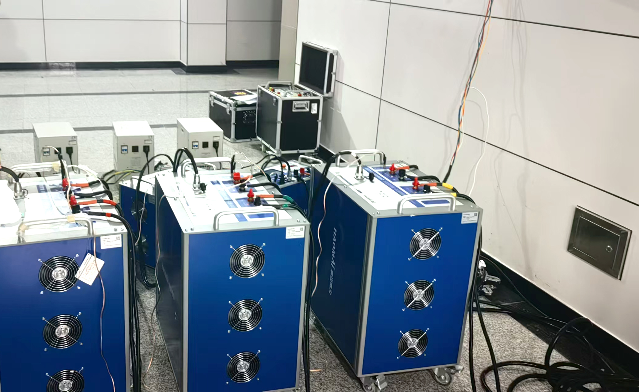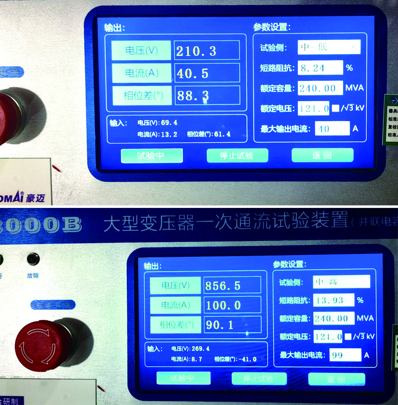 HTB-8000 大型變壓器一次通流加壓新型試驗(yàn)裝置 由江蘇省送變電有限公司與武漢豪邁聯(lián)合研制, 采用電容補(bǔ)償方法,在對(duì)試驗(yàn)電源要求很低的條件下,大幅提高輸出的試驗(yàn)電流和輸出功率,實(shí)現(xiàn)對(duì)大型(500kV及以下)電力變壓器進(jìn)行一次側(cè)大電流通流試驗(yàn),可穿過變壓器對(duì)兩側(cè)進(jìn)行通流試驗(yàn)(對(duì)側(cè)短接),對(duì)變壓器兩側(cè)一次回路進(jìn)行通流通壓試驗(yàn)。 完成對(duì)變壓器差動(dòng)回路、母差回路、母線/間隔回路等進(jìn)行一二次回路向量校核、互感器變比檢查、保護(hù)向量校核等工作。