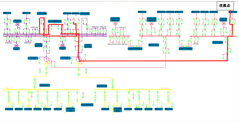 110kV處注流過1號(hào)主變,35kV處選擇短接。