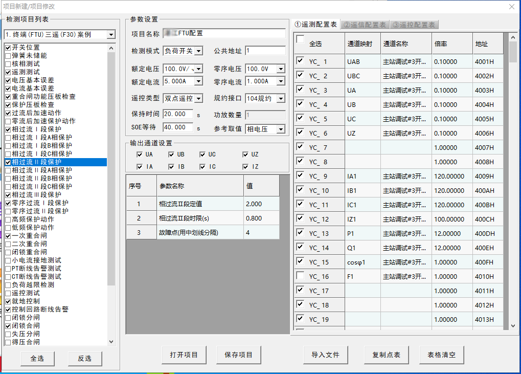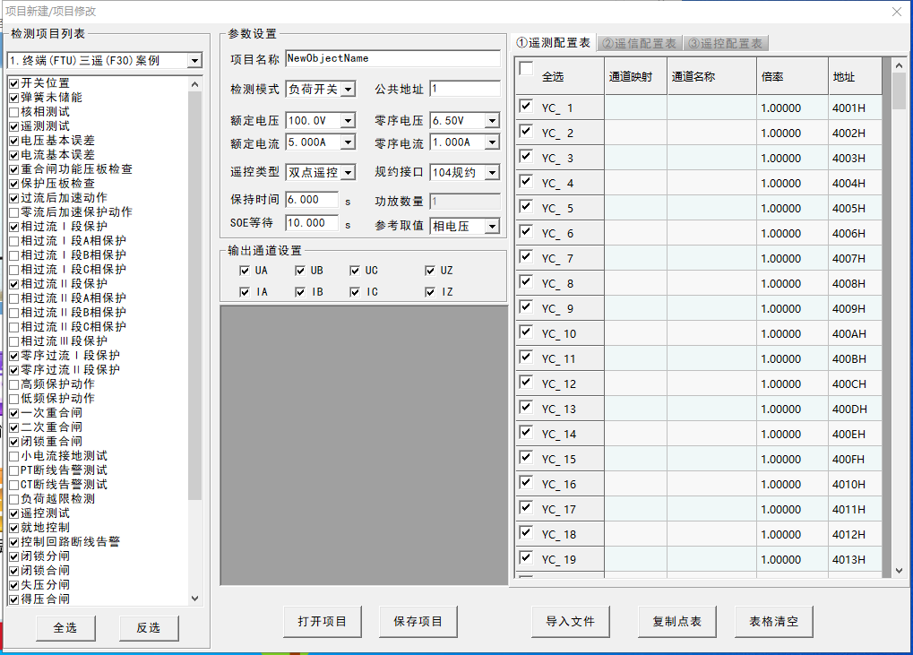 點擊導入文件,導入對應的終端三遙點表,選擇需要進行測試的項目,可對測試內(nèi)容進行修改與編輯。