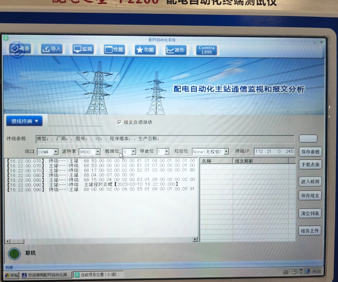 下方對話框出現(xiàn)鏈路通訊報文正常,并收到主站授時完成,即可確定主站。