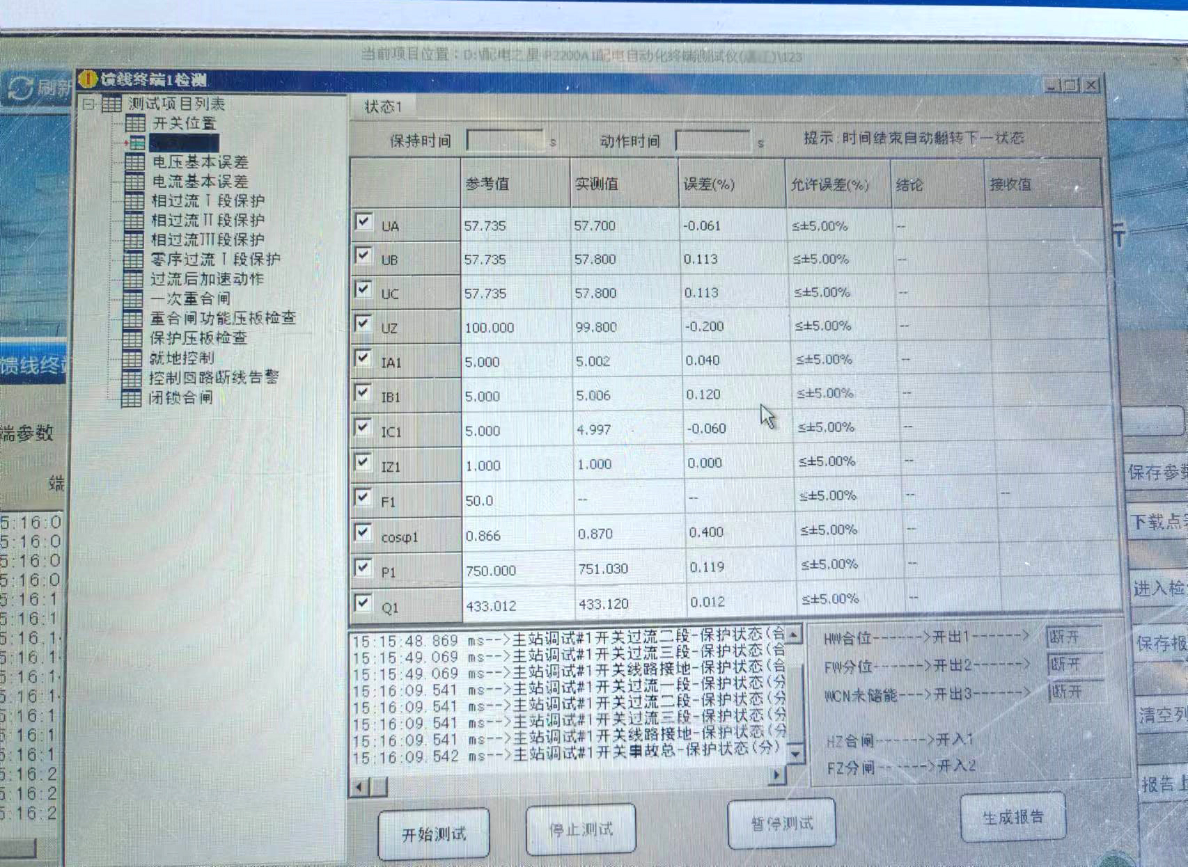 完成配置參數(shù)和接線檢查,點擊開始測試,調(diào)試人員根據(jù)提示設置,進行壓板投退操作,測試完成會彈出保存“生成報告”,自動生成檢測報告。