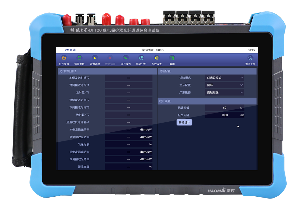 目前220kV及以上雙光纖通道縱聯(lián)保護因通道故障造成縱聯(lián)保護閉鎖,難以快速尋找故障原因,武漢豪邁研發(fā)生產(chǎn)的繼保之星-DFT20 光纖縱差保護雙通道綜合測試儀是一款雙光纖通道、繼電保護裝置以及智能終端綜合測試儀,可同時跟蹤北斗/GPS授時信號,采用北斗/GPS雙模對時,對繼電保護中光纖縱聯(lián)保護通道收發(fā)時延一致性進行測試。