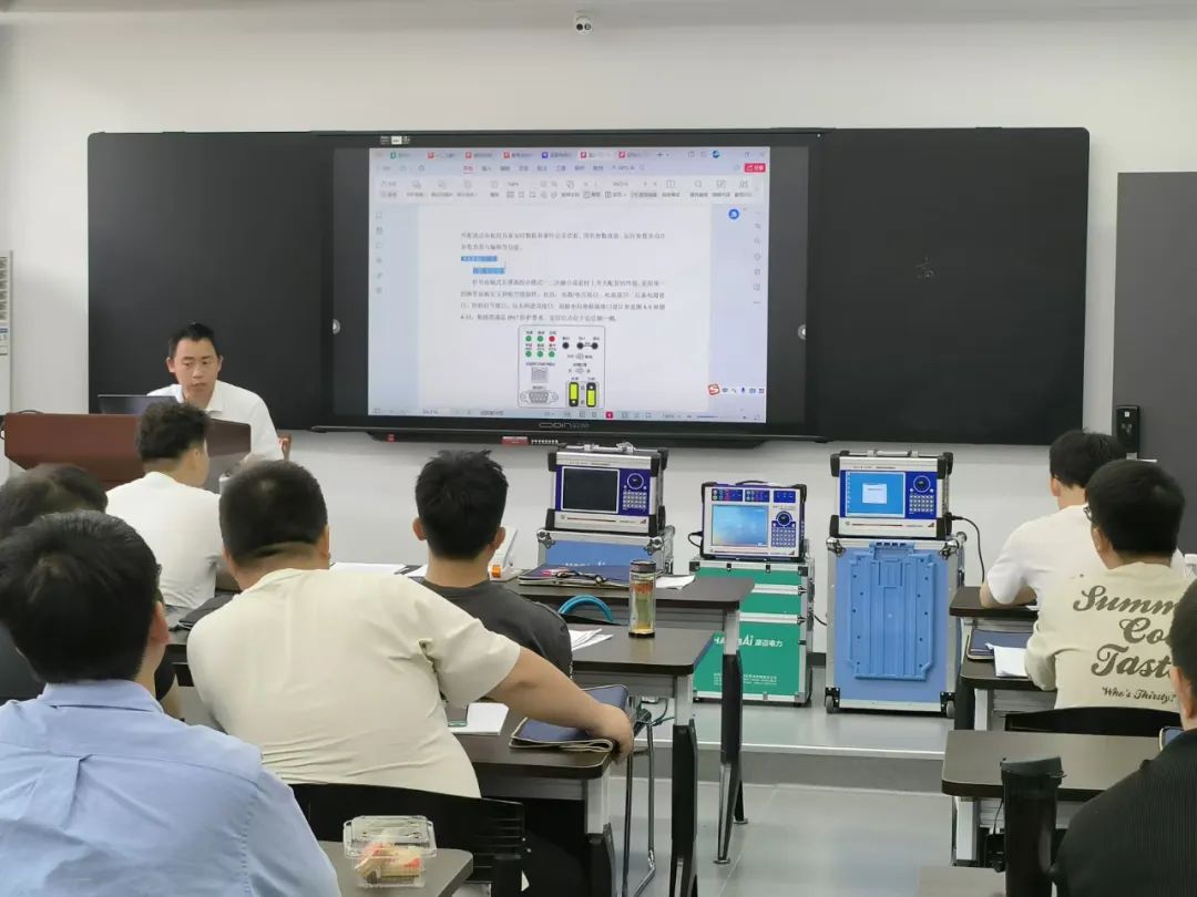 各參賽單位高度重視此次競賽,精心準(zhǔn)備,在比賽前進(jìn)行了緊張有序的集中訓(xùn)練。 武漢豪邁接到多個(gè)參賽單位的培訓(xùn)邀請,制定了科學(xué)的培訓(xùn)方案,將理論知識與實(shí)戰(zhàn)演練相結(jié)合,精選培訓(xùn)內(nèi)容,涵蓋配電終端、配電自動(dòng)化終端測試設(shè)備、常見問題及注意事項(xiàng)等方面,并且著重講解了本次競賽指定測試設(shè)備——配電之星P2200A5 配電自動(dòng)化終端測試儀。 為了讓選手們扎實(shí)掌握要領(lǐng),熟練操作設(shè)備,培訓(xùn)過程中我司技術(shù)人員現(xiàn)場模擬試驗(yàn)環(huán)境,使用配電之星-P2200A5 對配電終端進(jìn)行調(diào)試演示,耐心細(xì)致地解答選手們在學(xué)習(xí)演練過程中遇到的問題,幫助選手們實(shí)現(xiàn)操作技能和應(yīng)變能力的全面提升。