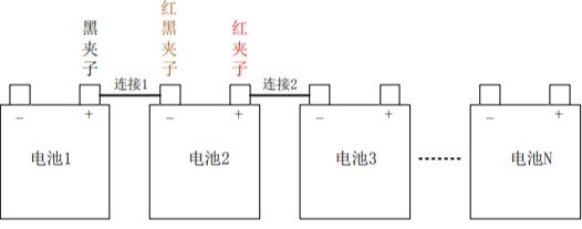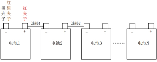 2)黑夾和黑紅夾接被測(cè)電池負(fù)極,紅夾接被測(cè)電池正極