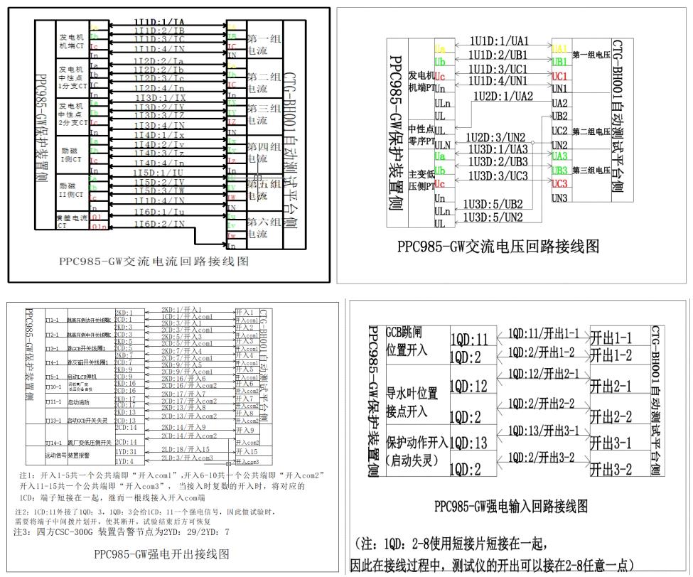1)電流/電壓試驗線以及開入開出航插線連接發(fā)變組保護(hù)和繼電保護(hù)測試儀,用于向保護(hù)裝置加量。 用網(wǎng)線、交換機(jī)連接至測試儀的聯(lián)機(jī)口用于回采動作、遙測信息、召喚保護(hù)定值等。