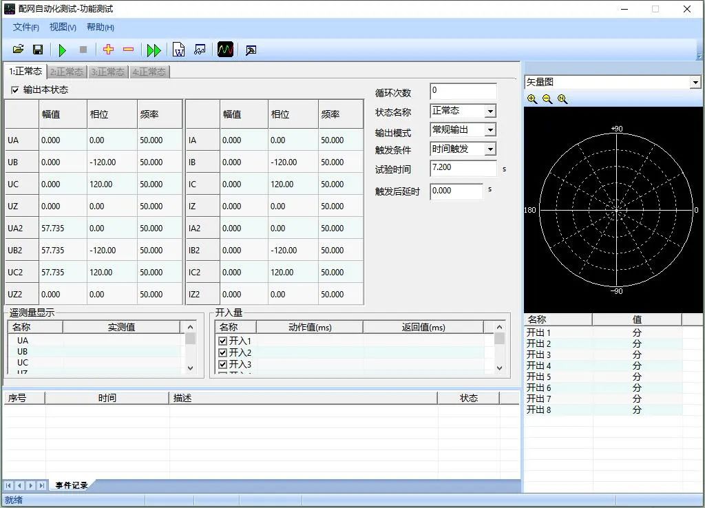 打開配網(wǎng)自動化測試系統(tǒng),點擊主界面“功能測試”,配置測試項目的狀態(tài)序列,并命名保存。