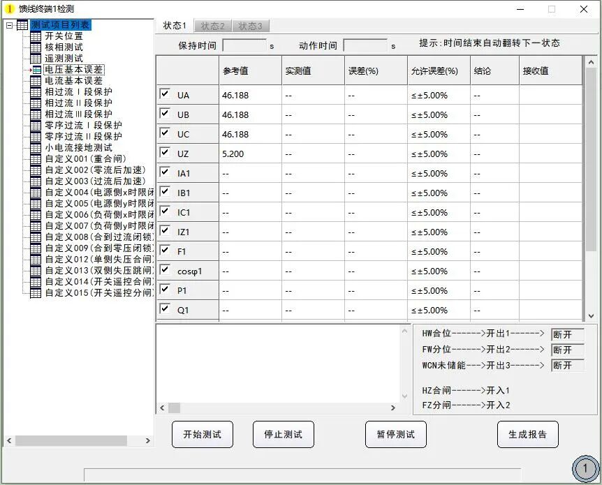 以往配電終端聯(lián)調(diào)時對點調(diào)試需根據(jù)點表描述,手動進行多狀態(tài)組合控制輸出,并逐項上送點位數(shù)據(jù),武漢豪邁配網(wǎng)自動化測試系統(tǒng)可自動完成終端對點測試,支持自定義測試項目,新增測試模板,實現(xiàn)狀態(tài)序列靈活配置,一鍵完成自動對點測試。