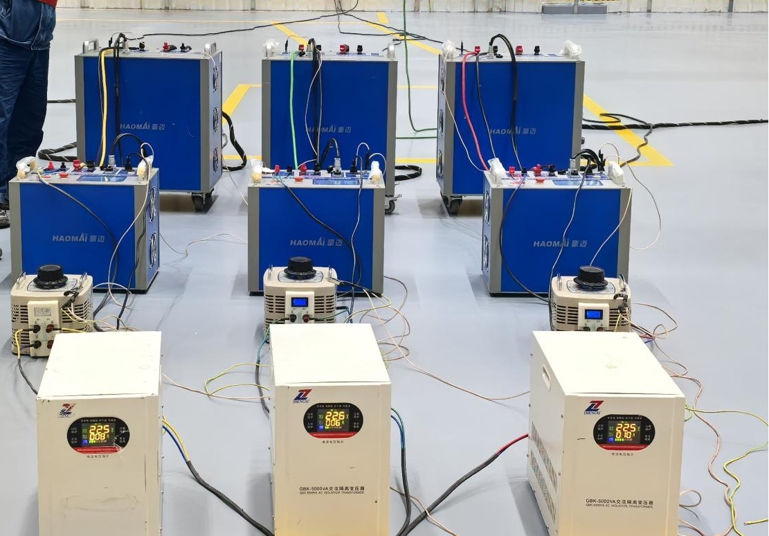 HTB-8000 大型變壓器一次通流試驗(yàn)裝置是以取電處(站內(nèi)檢修箱電源)A相電壓為基準(zhǔn),對(duì)側(cè)(網(wǎng)側(cè))短接接地沒有一次電壓 , 只有一次電流,故需以檢修箱電源 A相為基準(zhǔn)電壓輸出二次同源參考電壓至對(duì)側(cè)(網(wǎng)側(cè))保護(hù)二次側(cè)。
